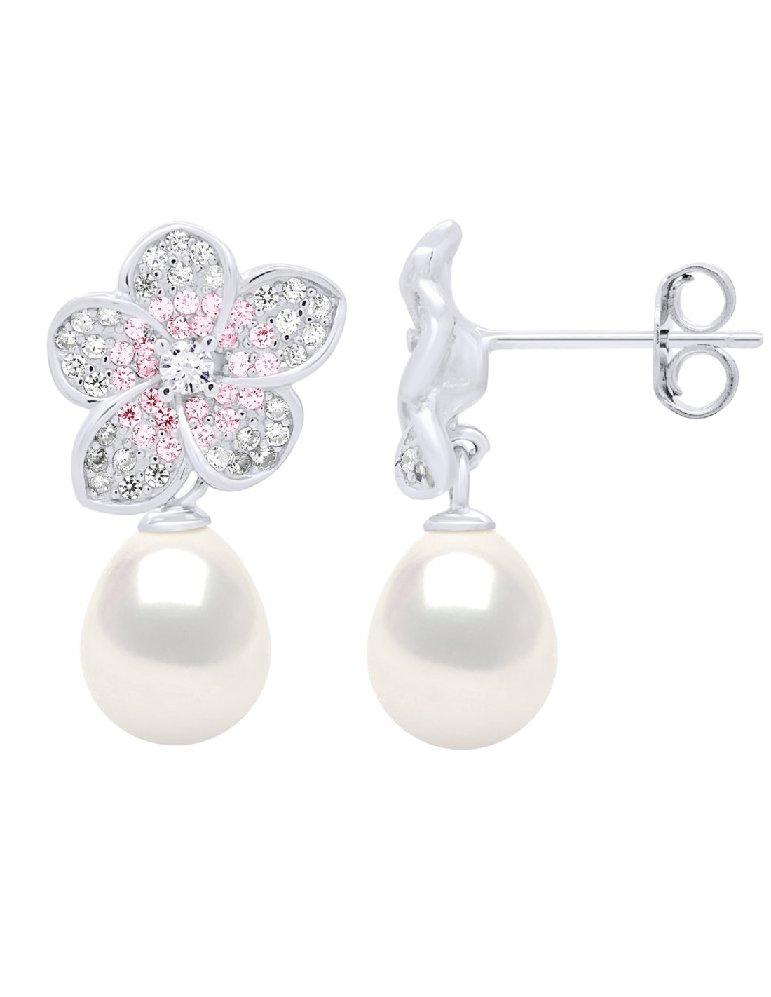Boucles d'Oreilles Perles Boutons - Système Crochets - Argent 925 - LAVANDOU
