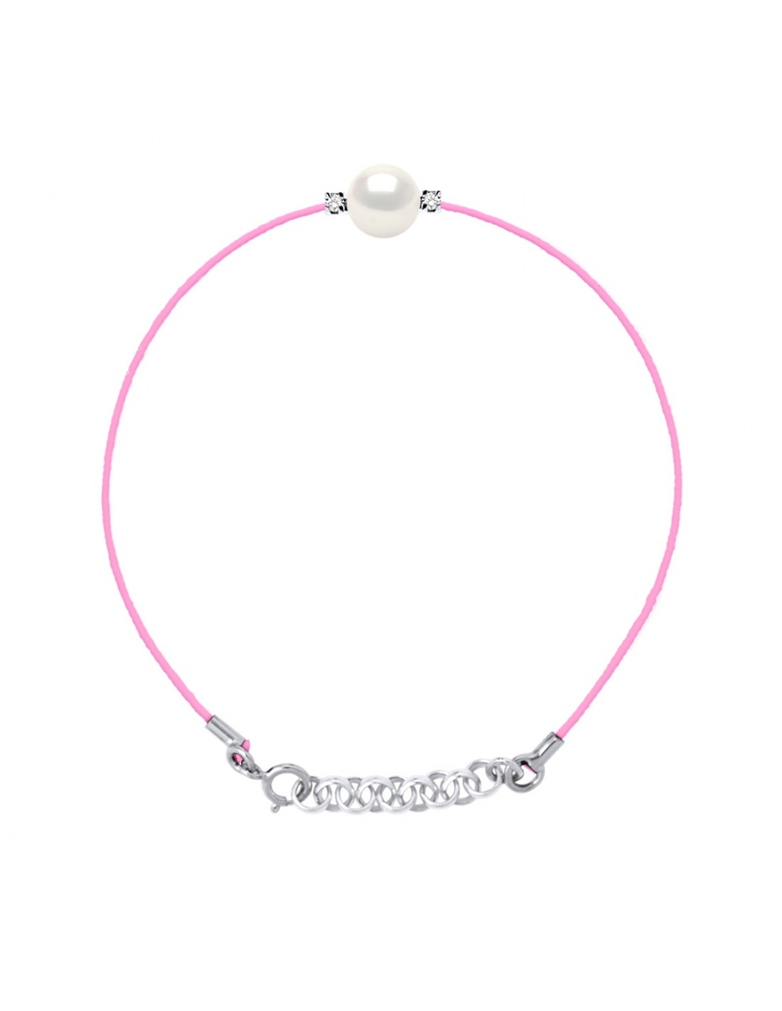 Bracelet Link Cord Bead Round 8-9 mm - Diamonds 0.060 CTS - Silver Jewelry 925 - Megeve