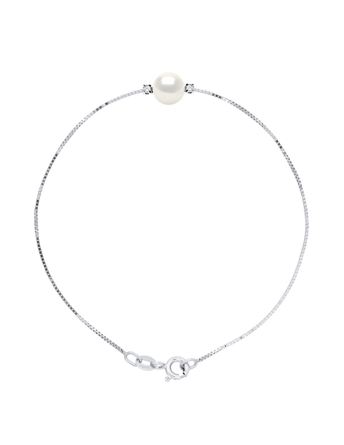 Round Pearl Bracelet 8-9 mm - Diamonds 0.060 CTS - Venetian Chain - 925 Silver Jewelry - Megeve