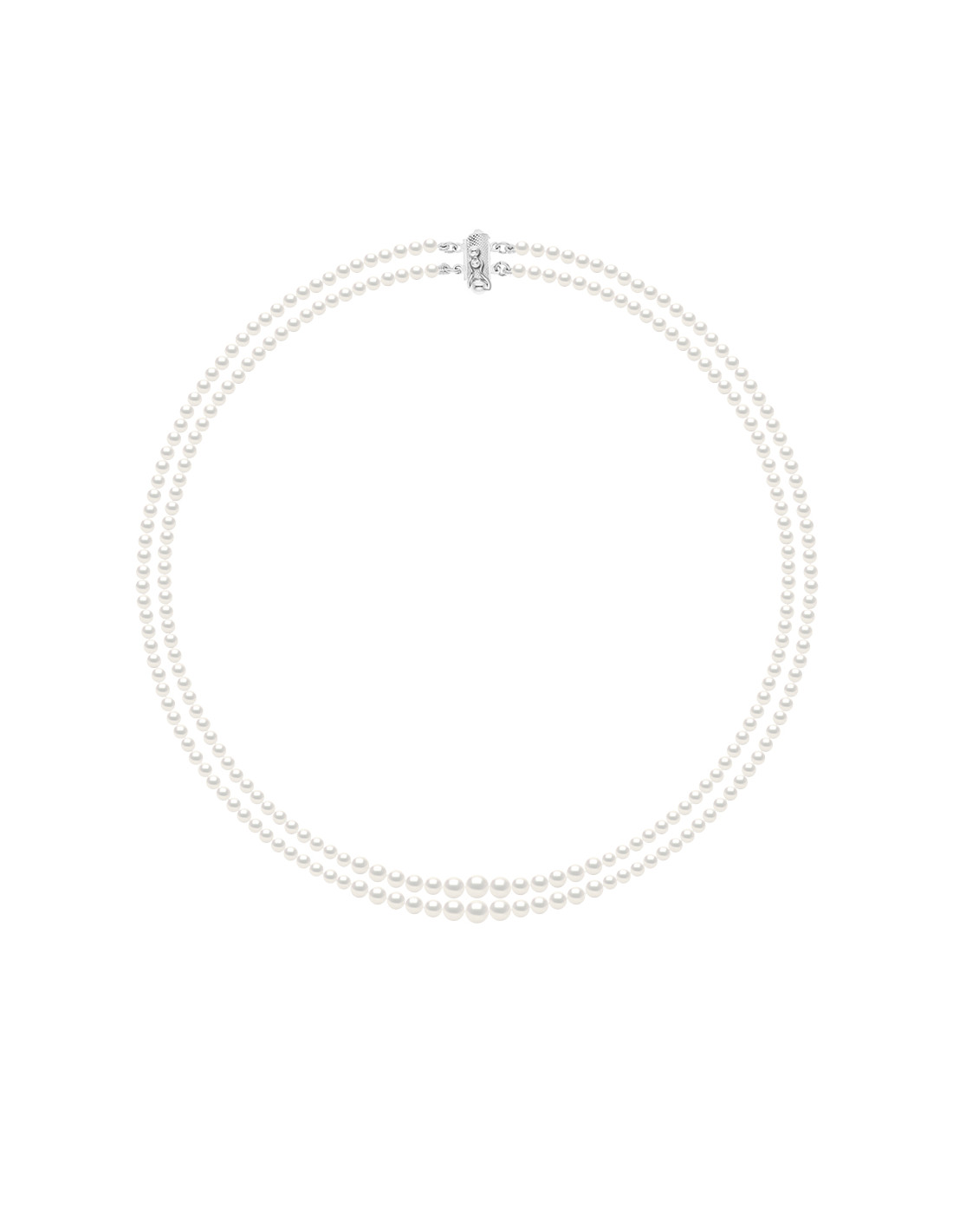 Round Bead Double Rang Necklace 4 to 6 mm - Silver 925 - MONTAGU