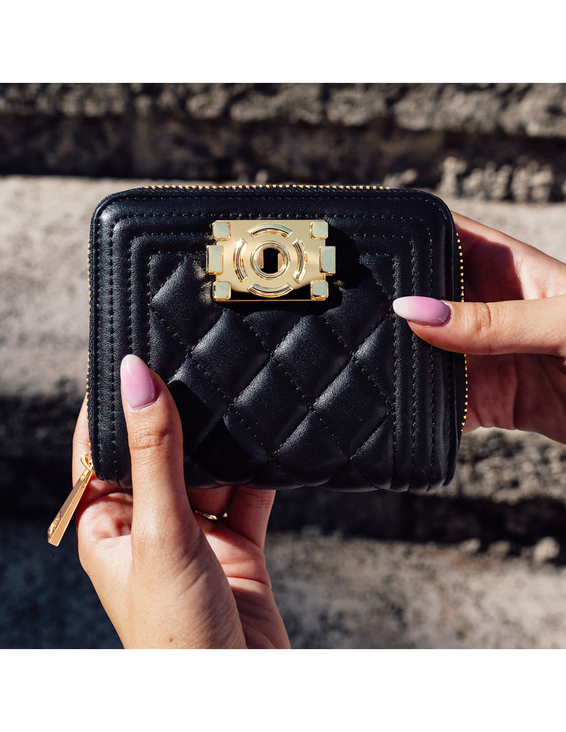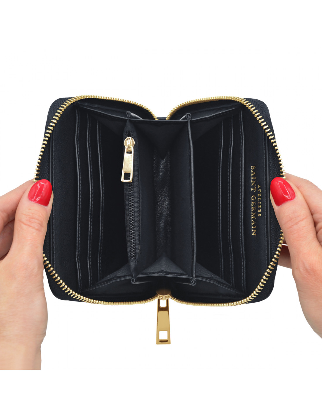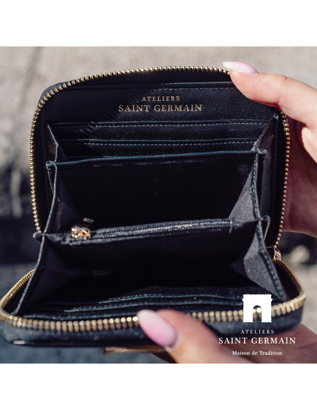 Ateliers Saint GermainPorte Monnaie Matelassé Zippé - Porte Monnaie zippé intérieur - Porte Cartes - Compartiments intérieurs - Boucle Dorée - Logo ATELIERS SAINT GERMAIN - Finition Matelassé